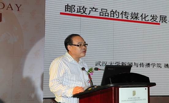 姚曦教授发表主题演讲:邮政产品的传媒化发展与品牌创新