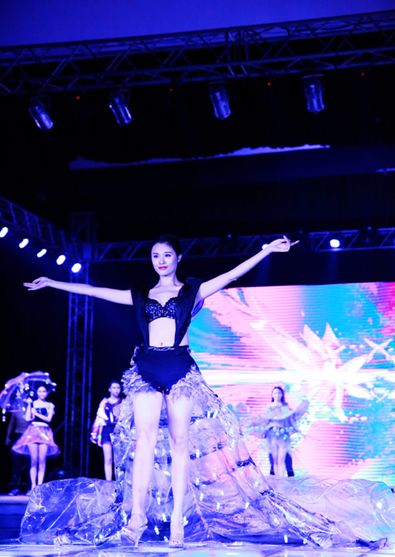 政治与公共管理学院的《柠檬数》同样别出心裁。他们采用黄色与黑色的独特搭配,加上几何元素的拼接,设计出一件件清新而不失高雅的佳作。一曲短小的舞蹈开场,活力四射。将魔方的创意融入服装设计,一个个紧凑的方块堆积于胸前,剪裁精致,做工精美。优雅的长裙上是色彩的撞击,简约中更不失打动人心的力量。
