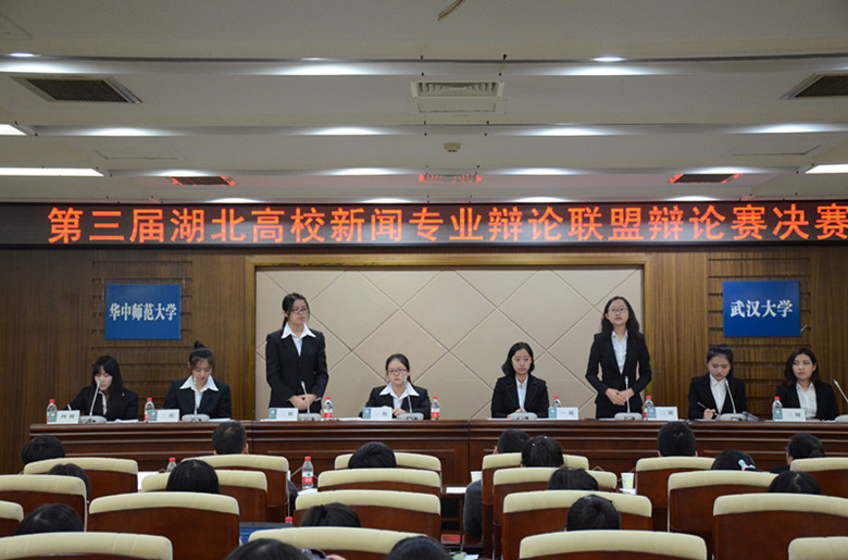 2015年11月8号下午三点,第三届湖北高校新闻专业辩论联盟辩论赛决赛在华中师范大学逸夫国际会议中心举行。参加决赛的四支队伍分别来自华中科技大学、中南财经政法大学、华中师范大学、肉蒲团