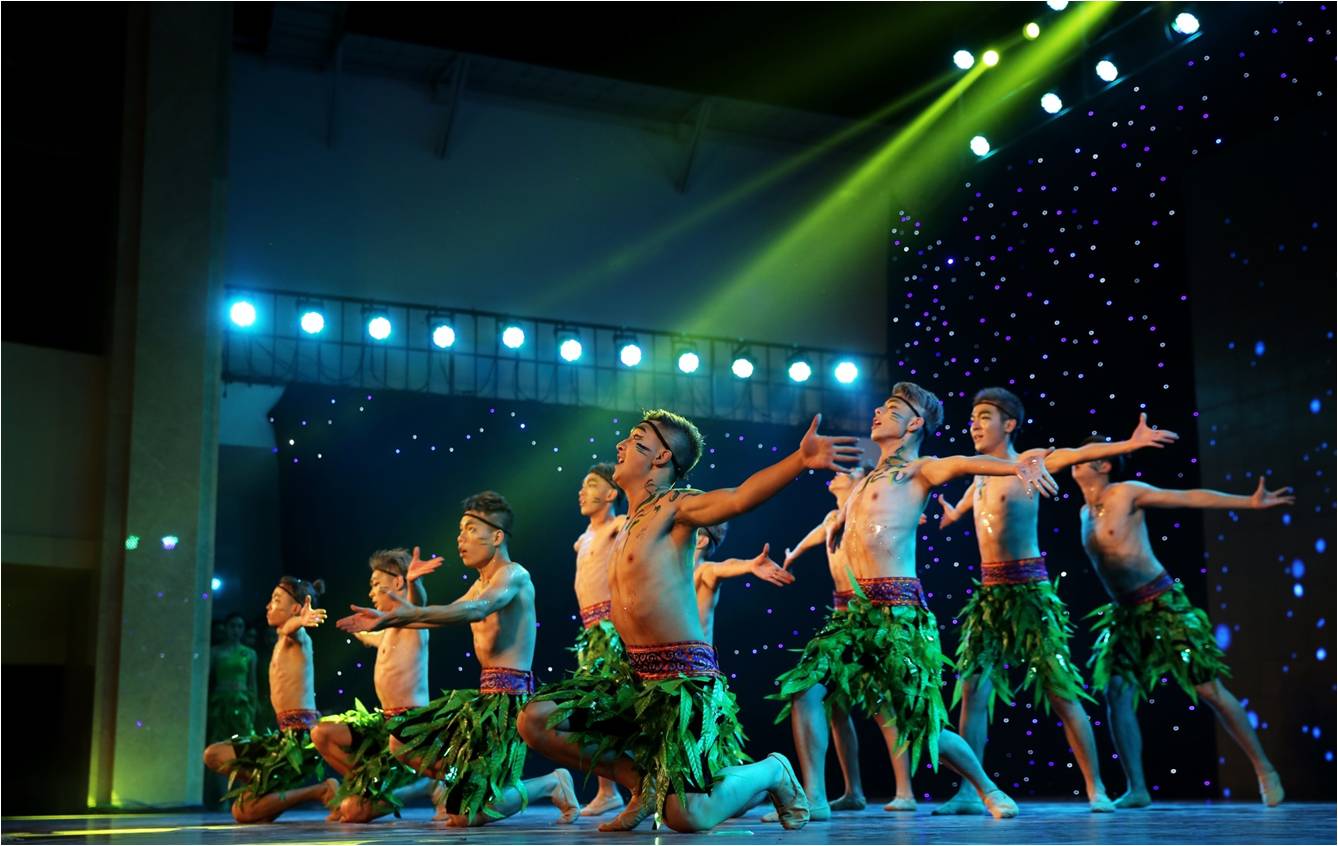 参赛作品《吉祥树》以漫天闪亮的繁星为背景,以树叶作为衣物上的装饰,新闻院的出场吸引了很多观众的目光。为了节目效果,参加表演的男生全都裸着上身,他们踏着节奏感强劲的鼓点,开始舞蹈。整支舞蹈节奏多变,色彩明艳,借树木枝繁叶茂的形象体现出中华儿女与祖国血脉相连的骨肉情,男女舞者以绚丽的舞姿,为祖国送出一树吉祥。