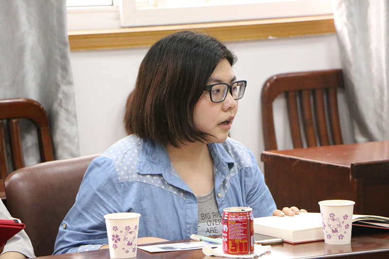 “斯通纳的一生扮演了多种身份:丈夫、情人、父亲,但这些角色的扮演都不尽如人意地失败了。而让我感动的,是他对于自己的扮演,对于良知、原则、兴趣的坚持。”14级的黄邹文娇首先谈了自己对主人公的看法,在她看来,这本书所传达的失落感是每一个平凡人普遍会经历的真实,而这恰是生活的原貌。