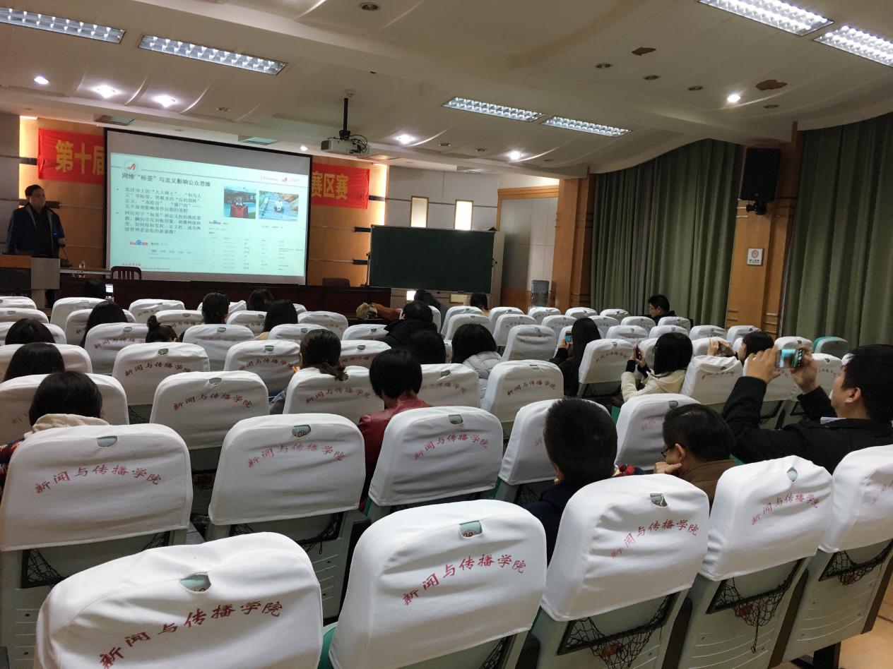 学子带来了题为“网络舆情研判与产业发展”的讲座。单总编是人民网舆情监测室的筹建者之一,多次参与国家社科基金项目,其网络评论《打通“两个舆论场”》一文获得了2011年度“中国新闻奖”。
