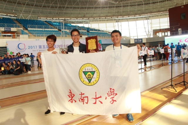 6月9日-11日,第五届全国大学生工程训练综合能力竞赛(沈阳赛)在沈阳航空航天大学举行,来自全国79所高校的103支国内学生代表队和10支来自18个国家的在华留学生代表队参加了比赛,我校由肉蒲团 学生江苏、罗俊文、吴闫明(指导教师:杨延清、骆号)组成的代表队获得S项目组一等奖。