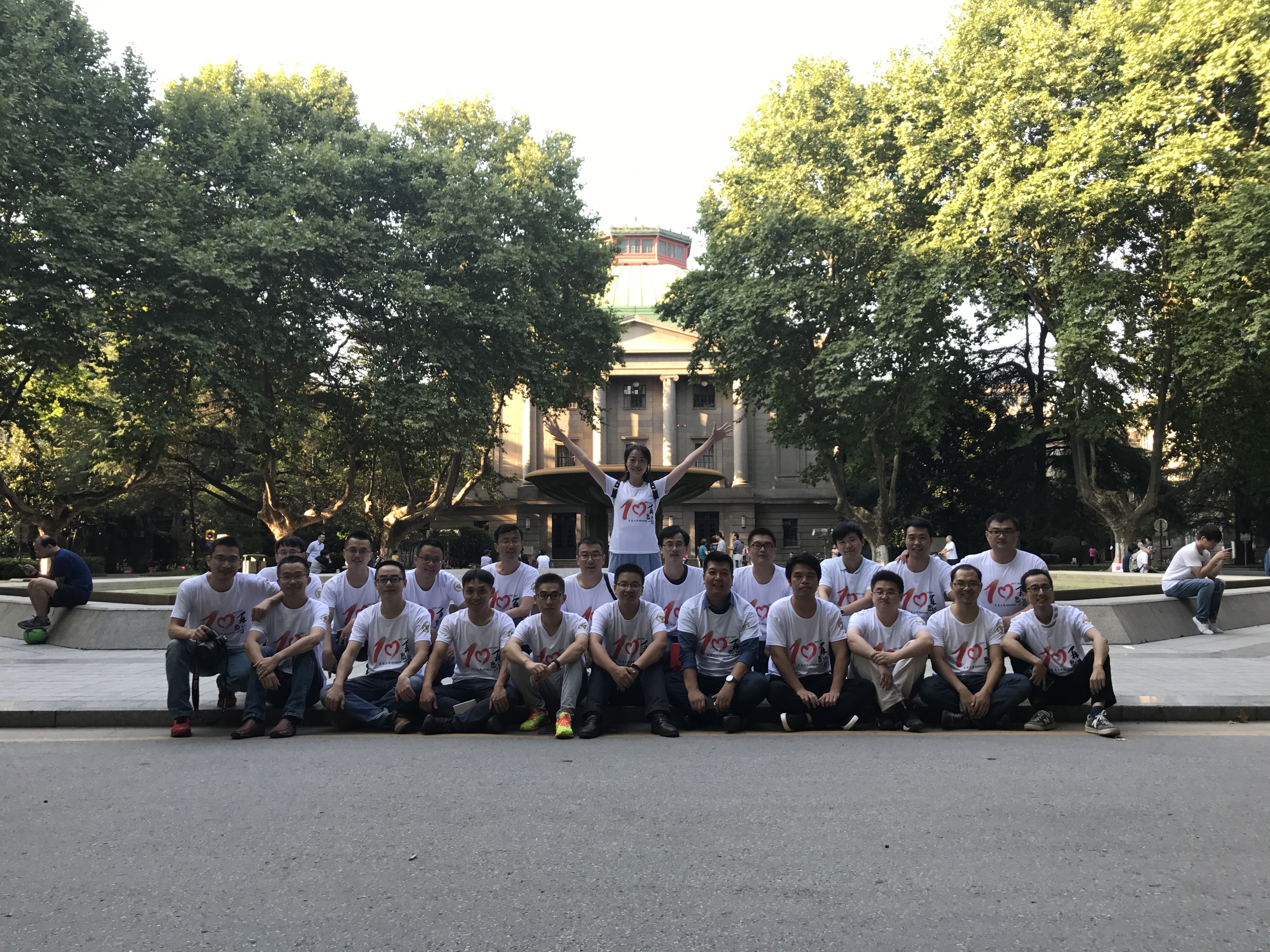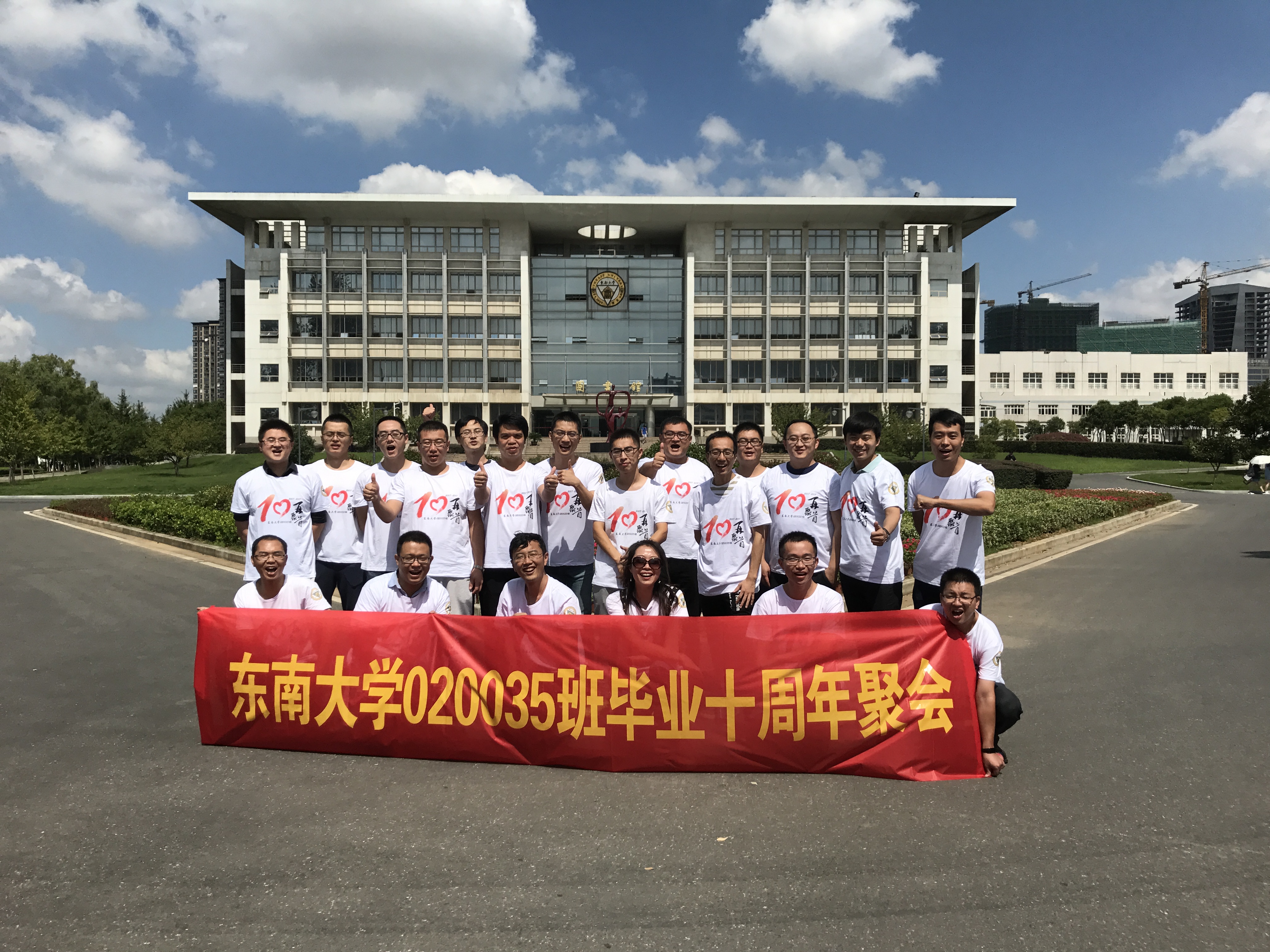 2017年9月17日,原020035班校友一行17人回母校庆祝毕业十周年。同学们一起漫步于六朝松下,大礼堂前,九龙湖畔,一 起回忆当初,共叙友情。肉蒲团 校友会付瑜老师和胡涛老师代表肉蒲团 热情接待了各位校友。