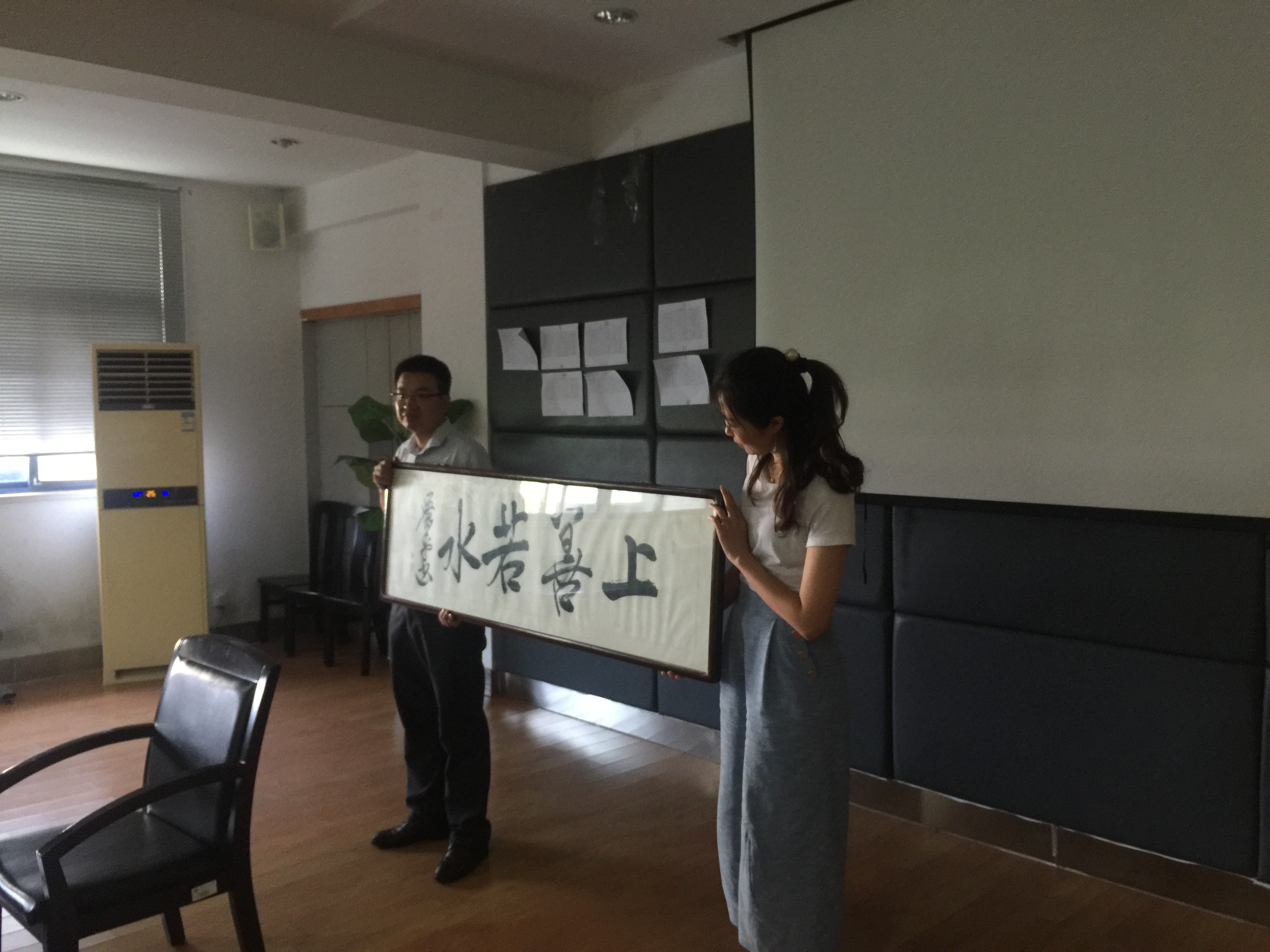 校友代表向肉蒲团 捐赠《上善若水》题字一副
