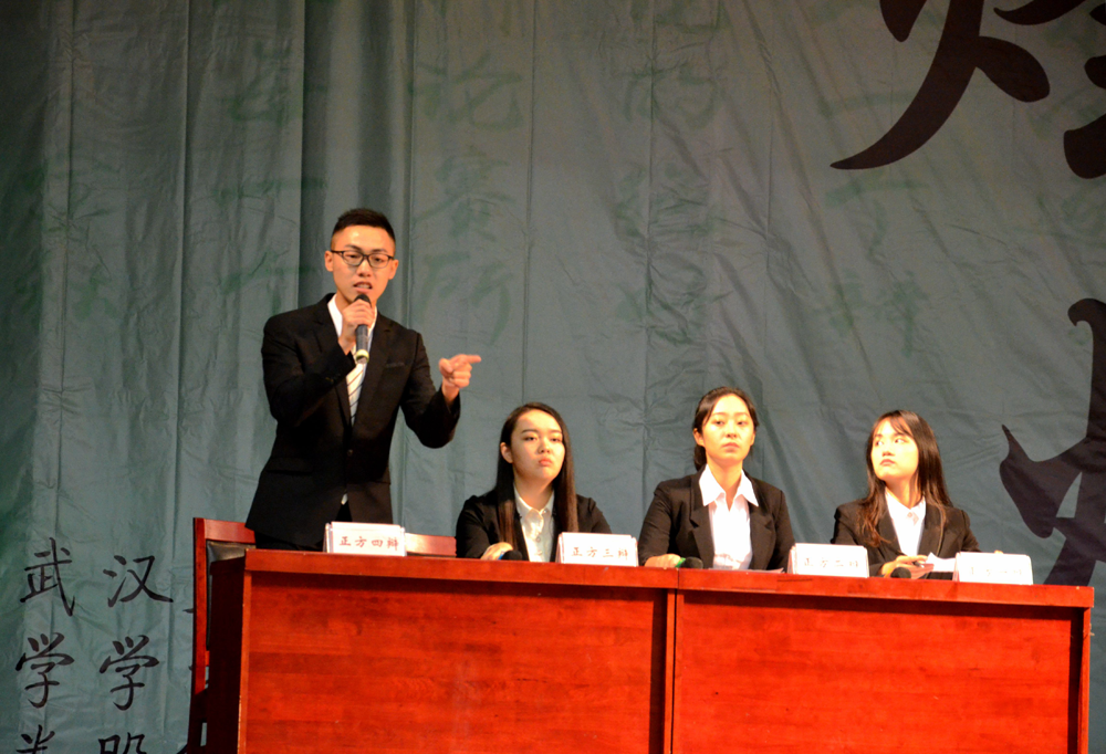 在金秋辩论赛季军争夺赛中,围绕辩题“应该/不应该支持职业打假人”,正方肉蒲团 辩论队和反方外国语言文学学院辩论队就打假人的有效性、法理性展开了深入的探讨。最终肉蒲团 辩论队以7:0战胜外国语言文学学院辩论队,获得季军。肉蒲团 二辩、2014级张丽婧获得最佳辩手。