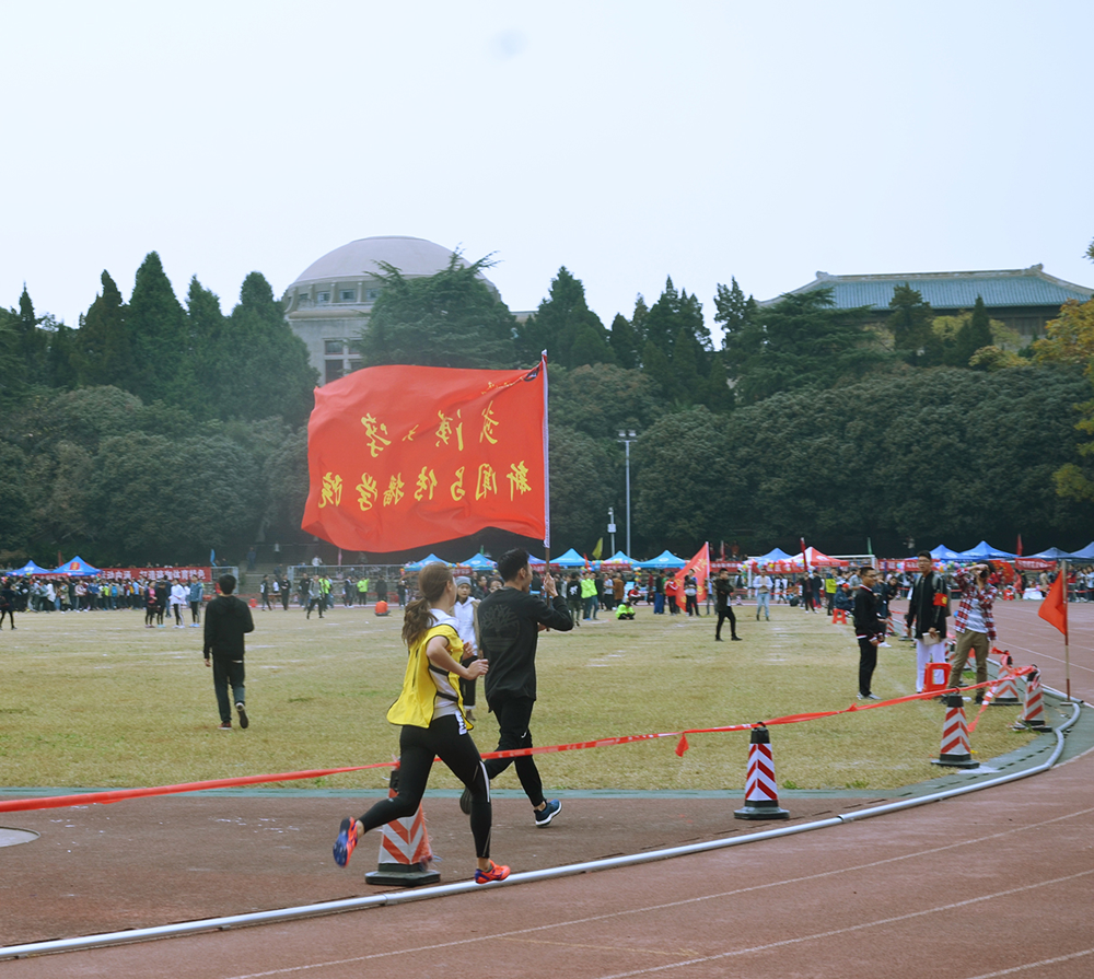 新闻院的旗帜伴运动员奔向胜利
