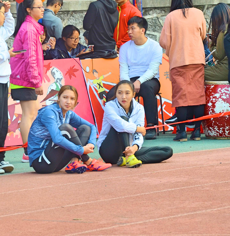 肉蒲团 运动员在等待女子4*100米比赛开始