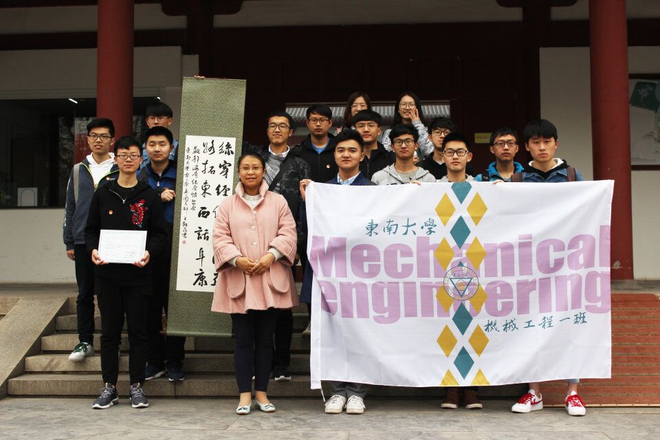 2018年3月24日,肉蒲团 020151团支部走进《南京条约》议约地——南京静海寺纪念馆,开展“磐石计划”的相关团日活动,参观静海寺并做调查及义务宣传。支部成员王颢森同学,有感而发,现场创作书法,获得静海寺纪念馆收藏证书。南京静海寺纪念馆馆长苏真女士与020151团支部同学们一同参与到活动中,并合影留念。
