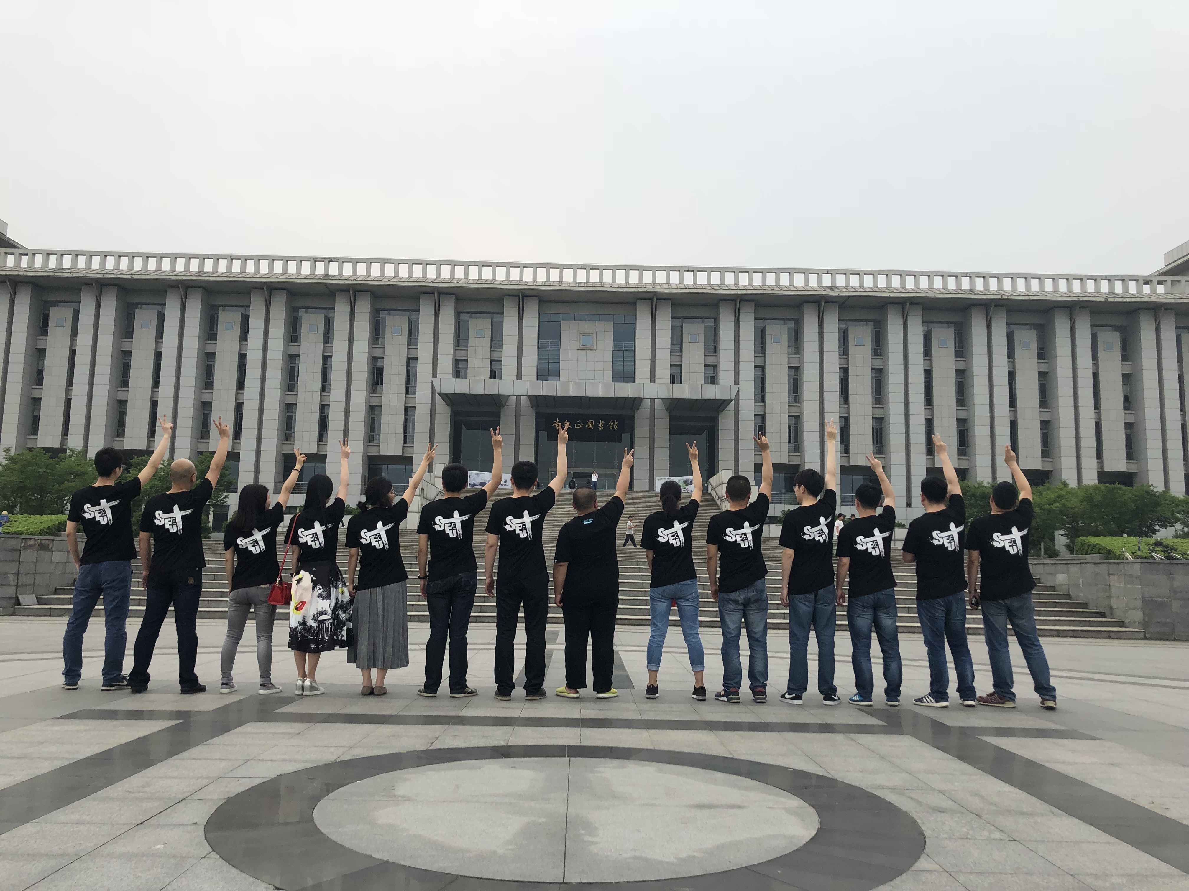 校友在九龙湖校区李文正图书馆前合影