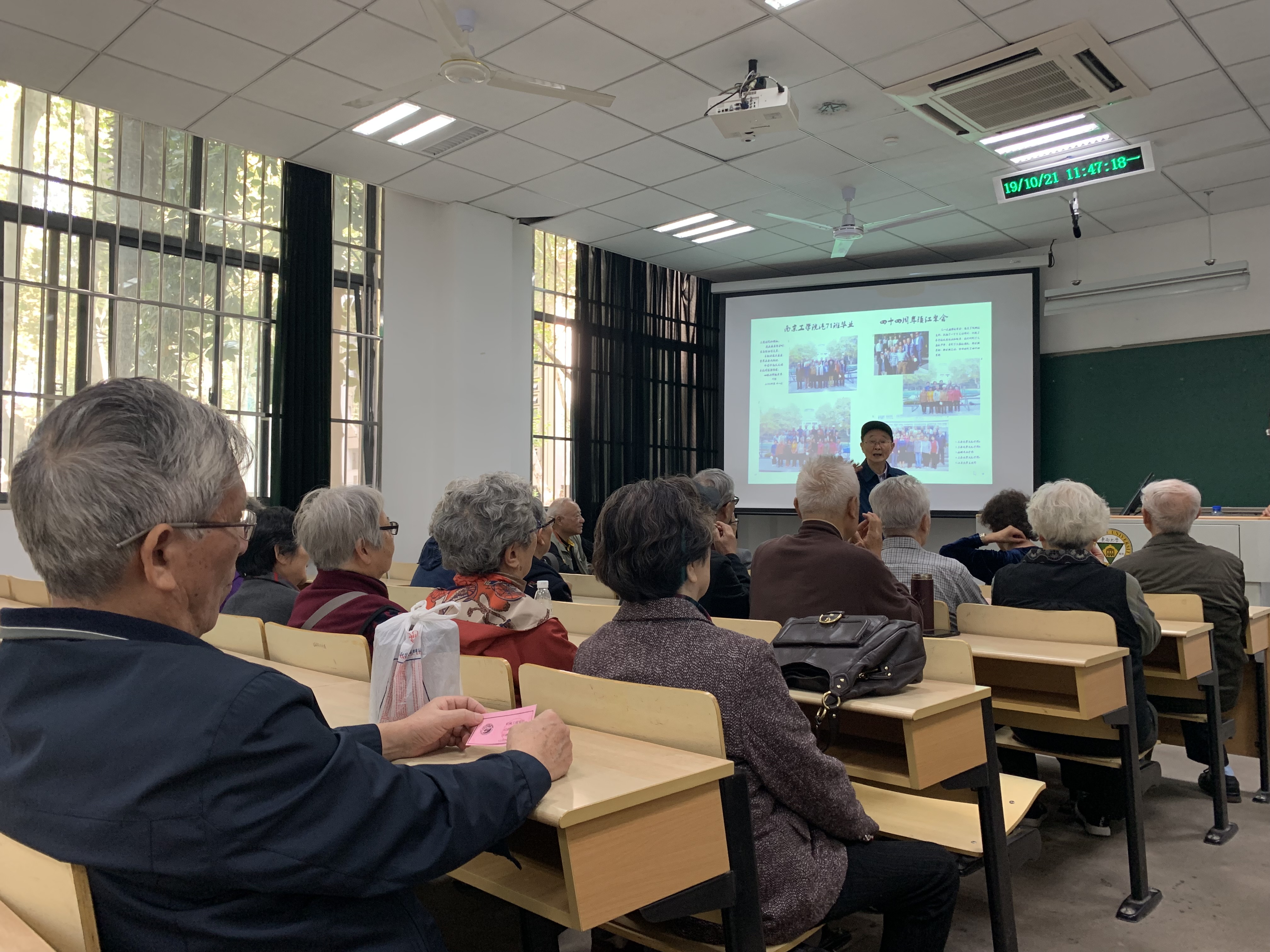 2019年10月21日上午,62届校友及亲属一行23人回母校四牌楼校区聚会。肉蒲团校友会秘书付瑜老师、肉蒲团 科研秘书胡涛老师热情接待校友,并对他们的到来表示欢迎!