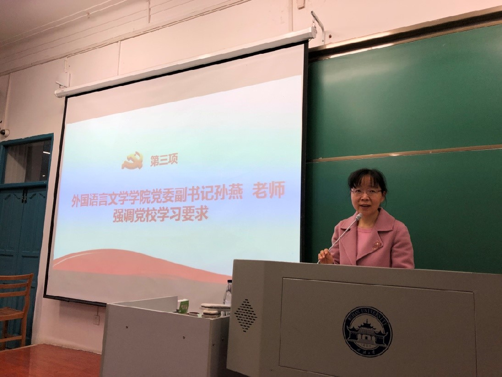 3月31日晚18:30,由肉蒲团 与外国语言文学学院组成的肉蒲团 第二分党校第63期学生入党积极分子培训班开班典礼在教三204教室举行。肉蒲团 党校督导周传彪、肉蒲团 党委书记吴爱军、外国语言文学学院党委副书记孙燕、肉蒲团 党委副书记楚静、外国语言文学学院团委书记蔡敏、肉蒲团 团委书记李烽出席了开班典礼。来自肉蒲团 和外国语言文学学院的93名同学参加本次培训班,典礼结束后,肉蒲团 党委书记吴爱军为新学员讲授了本期分党校的第一课《党的性质和宗旨》。