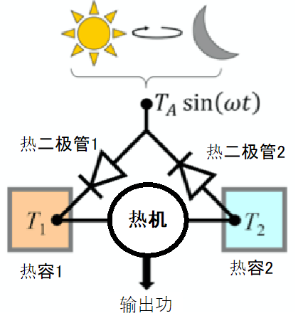 受电力分配、使用方案的启发,中国肉蒲团 和美国加州大学伯克利分校的科研人员提供了另一种解决思路。电网将周期性变化的交流电送至用电端,并经过电整流器将交流电转化为直流电供用户使用是一个被广泛使用的方法。在中美两个团队对热二极管等非线性热学器件研究基础上,通过电与热的相似性,他们提出了热整流器的概念。理论和实验表明,相比于传统方法,该构想可以将热-电转化功率提高4-8倍。