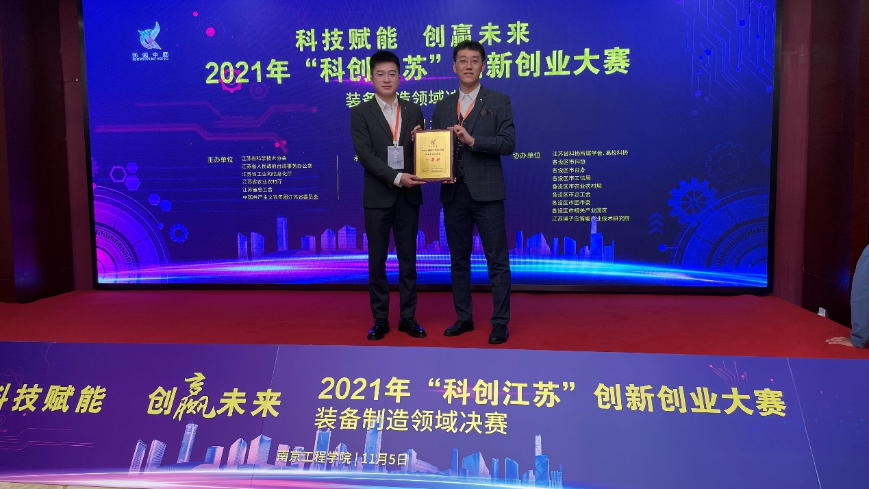 2021年11月5日,由江苏省科协、省台湾事务办公室、省工业和信息化厅、省农业农村厅、省总工会、共青团江苏省委主办的2021年“科创江苏”创新创业大赛装备制造领域决赛在南京工程肉蒲团
