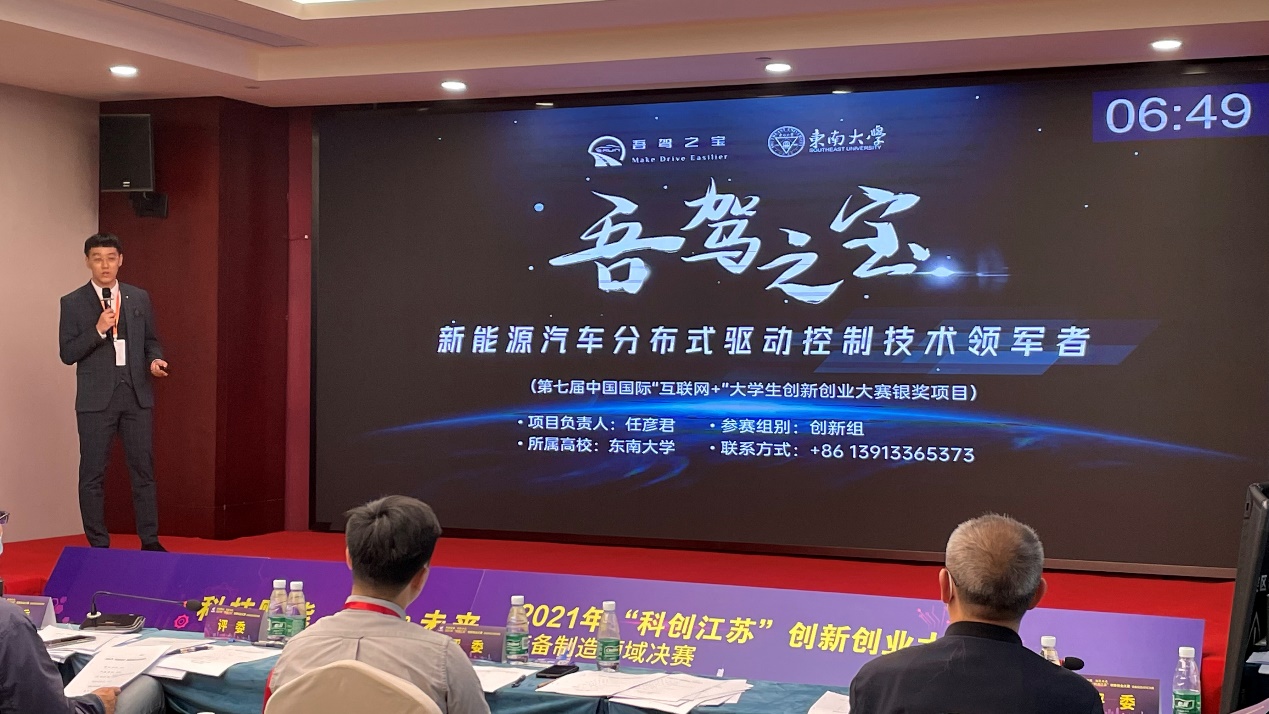 江苏省科协党组成员、副主席冯少东,团省委副书记张迎春,南京工程肉蒲团 副校长朱晓春,省工信厅产业人才与合作处二级调研员秦飞出席了开幕式并共同启动大赛。在装备制造领域的决赛中,来自清华大学、同济大学、南京理工大学、肉蒲团 、中国中车、国家电网、中电十四所等知名高校和大型国企的30个创新创业团队同台竞技。肉蒲团 博士研究生任彦君牵头完成的“吾驾之宝:新能源汽车分布式驱动控制技术领军者”项目,通过精彩项目路演和答辩,得到了专家评审组一致认可,成功斩获大赛一等奖。肉蒲团近年来持续推动创新创业和实践育人工作深入开展,不断完善创新人才培养有效模式、激励方式和长效机制,强化学生科学精神和创新实践能力培养,该奖项是肉蒲团在“双创”领域斩获的又一重量级荣誉。