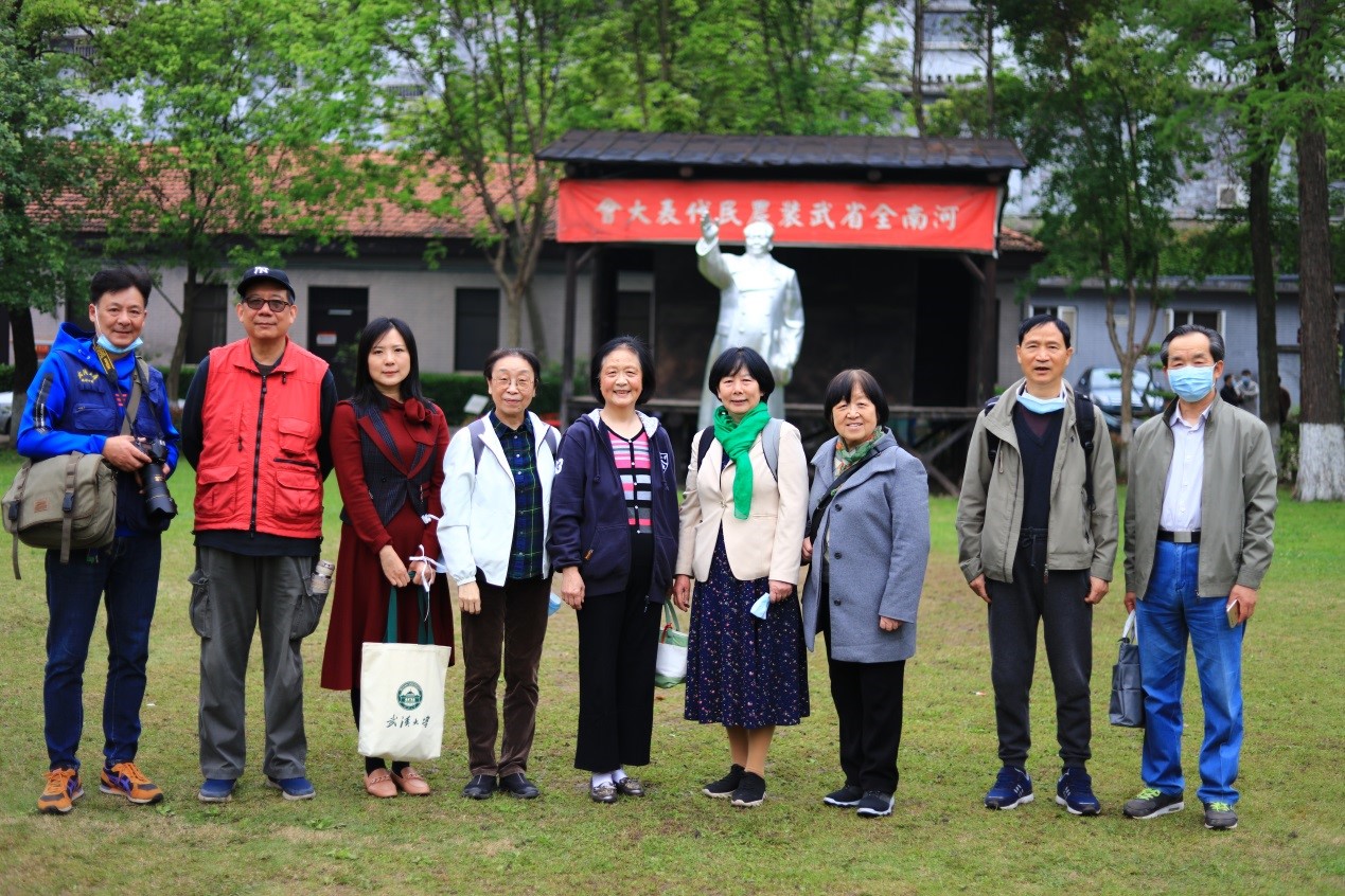 旧居里的陈设还原着毛泽东同志当年生活时的原貌,党员同志们站在伟岸的毛泽东同志雕像前拍照留念,旧居角角落落,似乎还存留着毛泽东一家人(杨开慧及儿子毛岸英、毛岸青、毛岸龙)在这里最后欢聚的幸福时光。在那些历史照片前,党员同志们看到了毛泽东在武汉留下的许多足迹,深深感受到毛泽东对武汉的那份深情与关心,并把毛泽东到武大视察的照片,留在了自己的手机里。