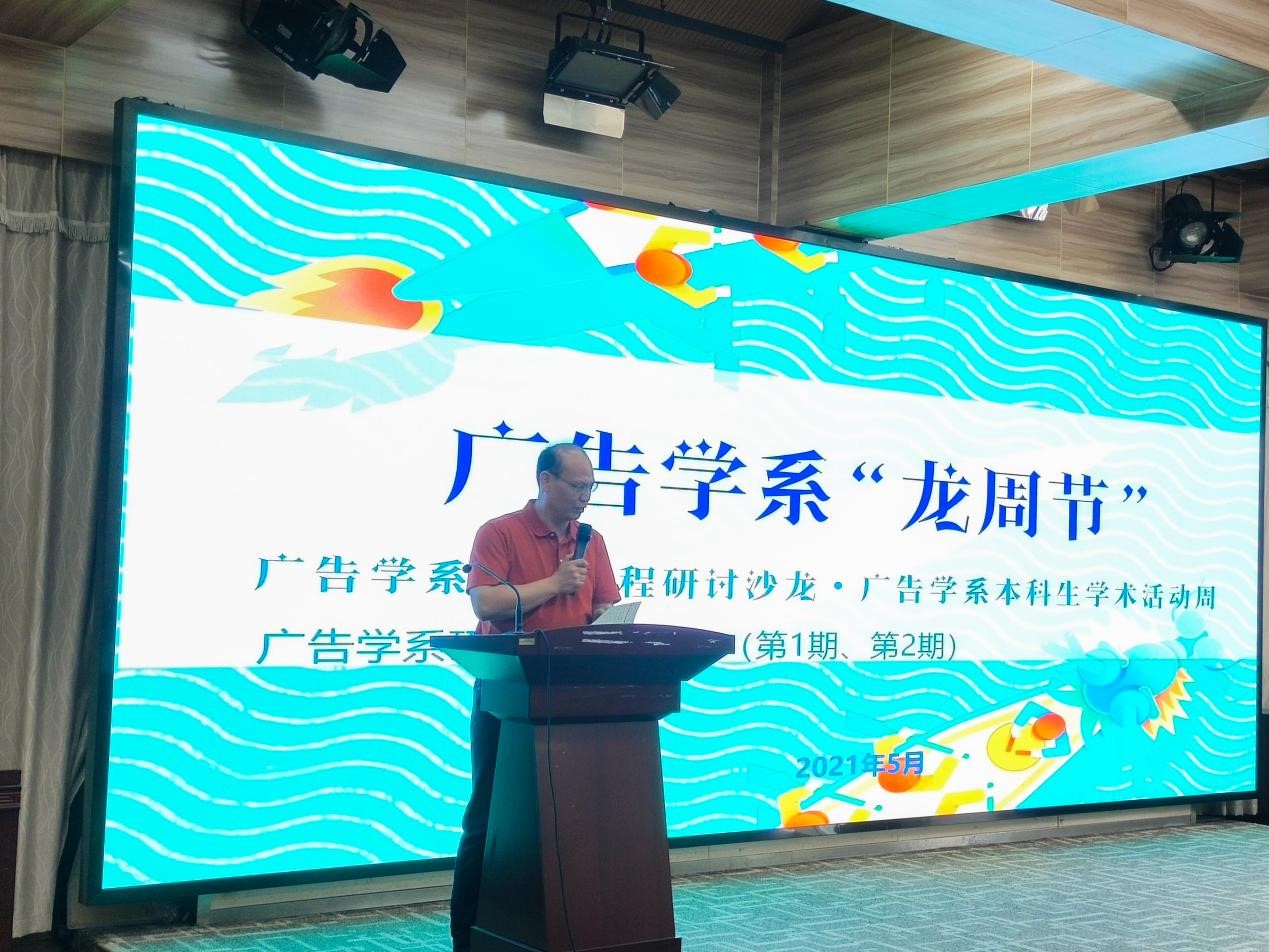 2021年5月14日下午,广告学系“龙周节”高端讲坛在学院三楼学术报告厅拉开帷幕。本次高端讲坛共分为两期,主讲人分别是广州医药海马品牌整合传播公司董事长丘剑华、广东省广告集团副总裁袁志。博士生导师周茂君教授主持会议。