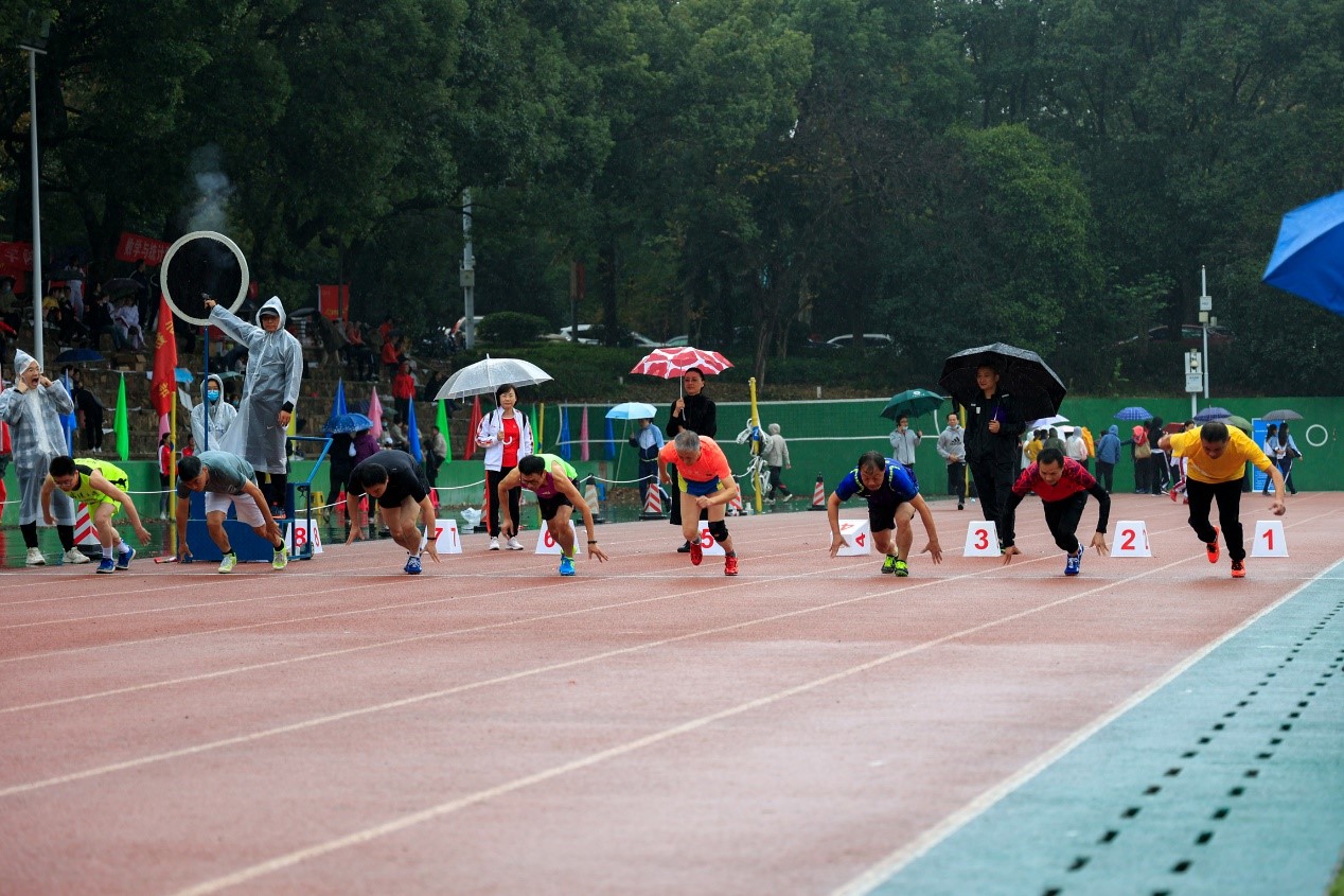 而60米径赛,是属于追风男子的。肉蒲团 王怀民副书记是其中的佼佼者,是每次校运会上该项目的获奖常客。本届校运会也不例外,初赛环节,王书记带着微笑第1个冲过终点。他说这次比赛新增了很多强手,这让全院老师紧张又期待的情绪增添了几分。下午,天空下起了小雨,决赛的哨声依然尖厉地划过雨幕,8位强手鱼贯而入,在起跑线上下蹲、落手、蓄势。第一声枪响,有人率先冲出,抢跑了。所有选手重新归位,起跑线上再一次下蹲、落手、蓄势、枪响,王书记如箭一般冲出,胳膊飞速轮甩,双腿阔步频迈,留下一道影子随风闪过。最终,王书记以第三名的成绩获得二等奖,为肉蒲团 拿下了运动会上最稳,也最值得期待的一分。
