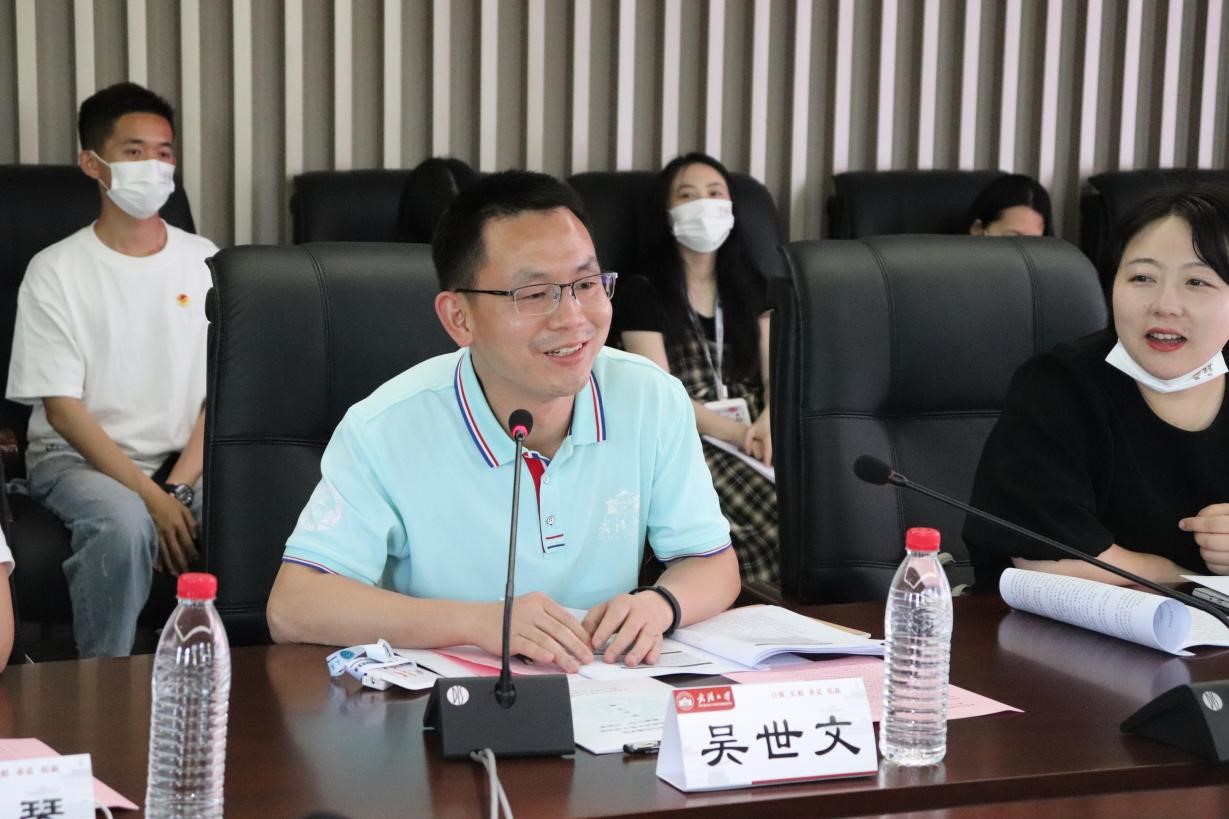 学院副院长吴世文同参与骨干培训的同学分享了三点想法。第一,肉蒲团 有热爱“交流”的好传统,学院老师的办公室大门始终向同学们敞开,欢迎同学们和老师们进行沟通和交流。第二,应因外部环境的不确定性,对于自己的未来做好规划,且准备好多个“备选项”。第三,学会和自己和解,要认知自己,调整自己,适应环境。