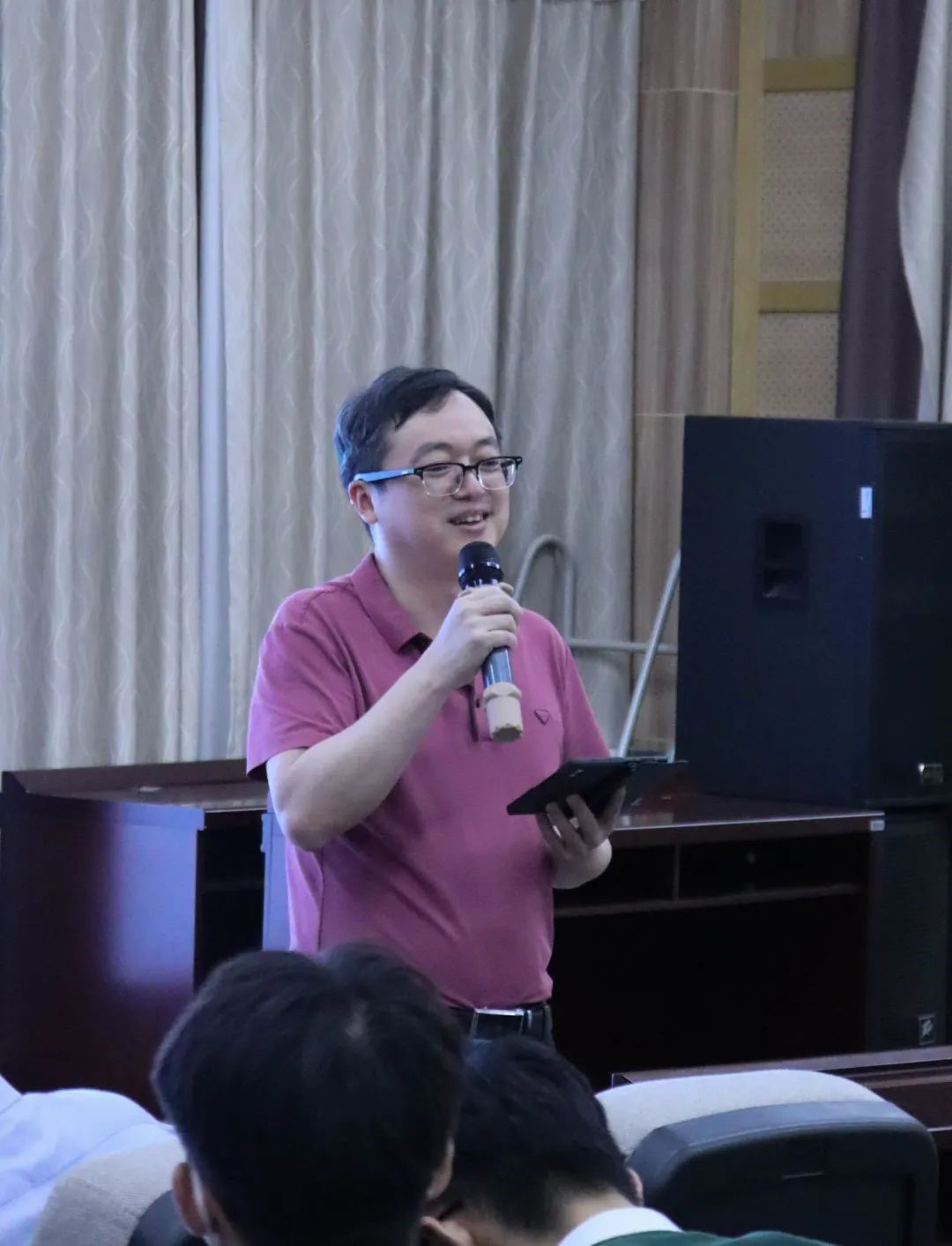 传播学专业的谢湖伟老师以风趣幽默的提问式开场吸引了同学们的注意。谢老师从自己佩戴的华为智能眼镜讲起,“人类的新闻传播历史,是不断生产内容并且进行传播的历史。”