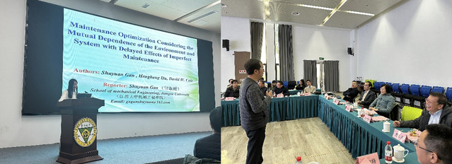 随后,各个高校的可靠性专家学者分别进行了报告。肉蒲团 周一帆教授、王冠军教授、苏春教授、谢明江副教授围绕复杂系统维修策略建模、多态系统可靠性评估与优化以及退化过程分析等主题分别介绍了自己最新的研究成果;南京理工大学汪建钧、林成龙老师介绍了南京理工大学质量管理与可靠性工程研究团队的人员组成以及相关的研究成果;南京航空航天大学赵旭峰、达高峰老师分别介绍了自己的研究方向并对未来的研究方向进行了展望;合肥工业大学郑锐老师介绍了其正在进行的关于“考虑动态采样的多元贝叶斯控制图”的研究;江苏大学甘淑媛老师报告了考虑环境和系统相依性以及延迟效应的维修优化问题,中国计量大学张建侠老师、南京财经大学马妍老师分别介绍了入职后承担的工作以及感想。报告期间,谢旻院士与金炯华教授对以上报告做出了相应评价与交流讨论。