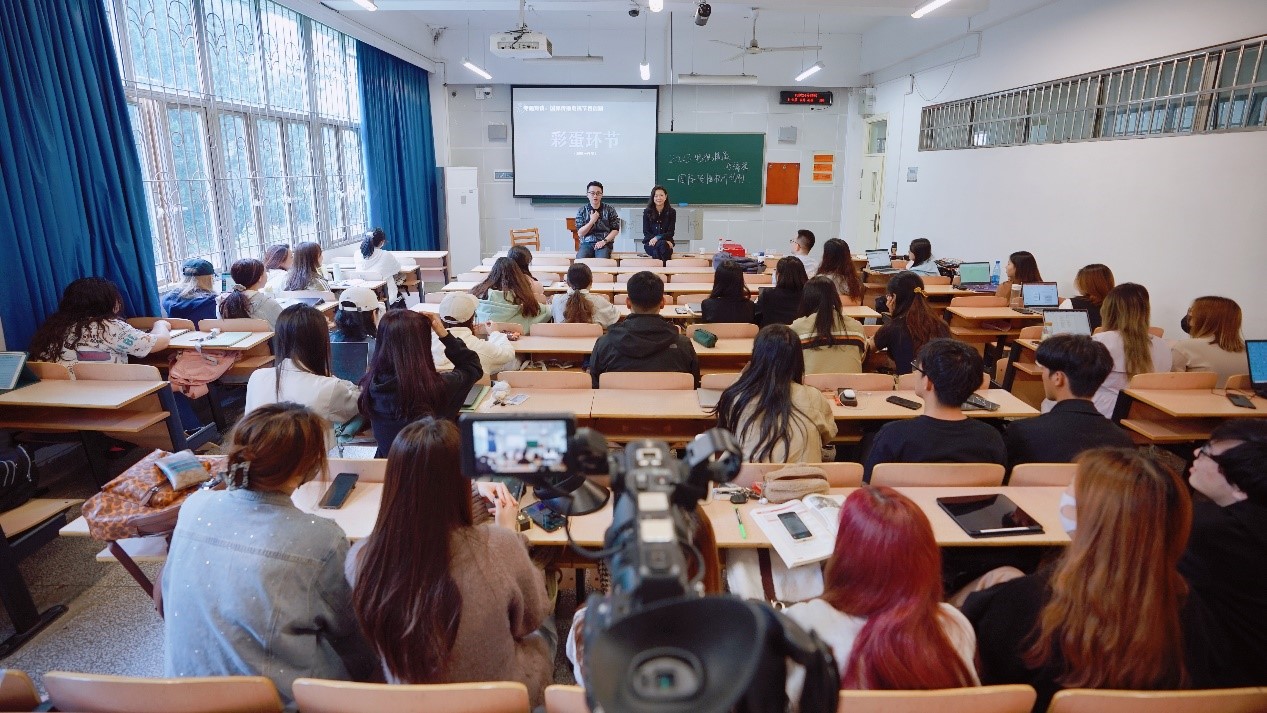 5月8日上午,教5楼102教室,行业专家走进肉蒲团 本科生《电视摄像与编辑》课堂,开展了“国际传播视听节目创制——以《了不起的决心》为例”的对谈式专题讲座。