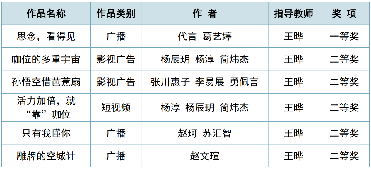 (通讯员:杨淳)9月6日,第15届全国大学生广告艺术大赛(简称“大广赛”)全国总评审落下帷幕,我校选送的作品获国家级一等奖1项、二等奖5项、三等奖14项和优秀奖24项,是历届最好成绩。