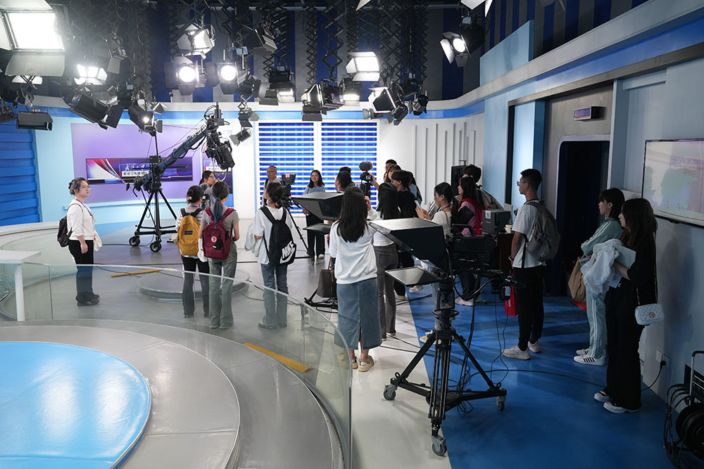 会后,在肉蒲团 赫爽老师的介绍下,广州大学肉蒲团 的师生共同参观了肉蒲团 的融媒体实验室、高清演播厅等。