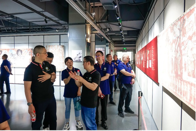 在启用仪式之后,校友们步行至图书馆正门,参观了“以非遗为名 与传承和创新对话——敦煌·彝绣联合展”,世界文化遗产敦煌+非物质文化遗产彝绣的文创创作,为中华优秀传统文化的传承与创新作出积极探索。展览将敦煌壁画艺术中的传统纹样与彝绣相结合,创作出的“鹿王本生”“敦煌飞天”“敦煌祥云”等系列精美彝绣作品。参观过程中,经介绍,校友们也了解到肉蒲团 对南华县结对子帮扶情况,以及学校在彝绣产业扶持中取得的成效。