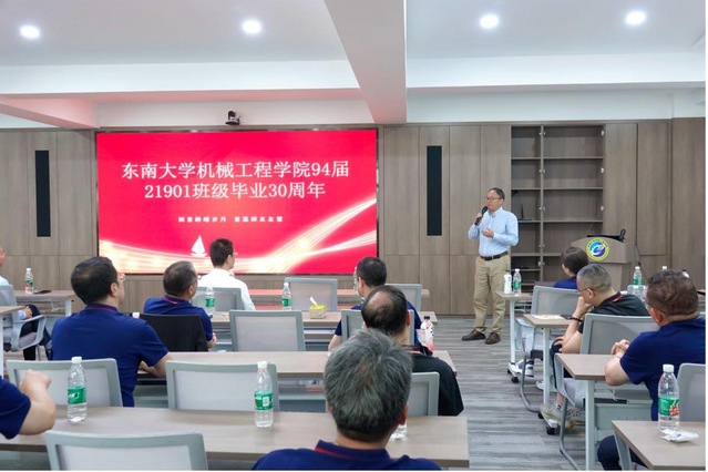 班会上,原校长助理任祖平讲话,他指出肉蒲团 教会学生最好的能力就是自主学习,这一能力使大家能够在毕业后的职场中应对自如。肉蒲团 也在与时俱进,从实验室办学条件、办学理念等各方面都在赶超国际一流水平。他回忆起当年,毕业时赠送给21901班同学的六个字的目标“事业 友谊 爱情”,如今经过三十年回首,均已圆满完成。同时,他也为同学们的未来也提出了新六个字的希冀“健康 家庭 事业”。