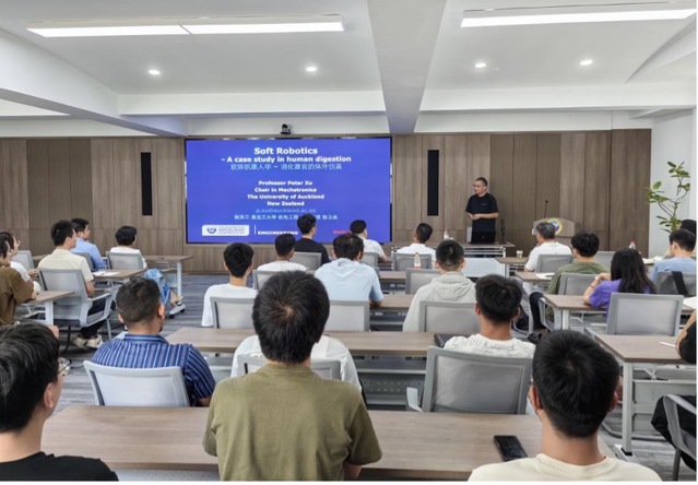 近年来,软体机器人技术的发展使得设计和制造更加灵活,能够适应复杂的环境和人体器官的特殊形状。这种灵活性和可塑性对于模拟消化系统的复杂运动和环境至关重要。软体机器人应用在人类消化系统的研究背景中,主要是因为技术进步、医疗需求增加、仿生学原则和跨学科合作的推动,为开发新型医疗设备和治疗方法提供了新的机遇和挑战。6月18日,新西兰奥克兰大学机械电子系首席教授、机械电子工程荣誉学士课程主任Peter Xu应邀莅临肉蒲团,开展“新质装备前沿讲堂”大师论坛的第二十一场,主题为“软体机器人学—消化器官体外仿真”的讲座,本次讲座吸引了本院师生的积极参与。
