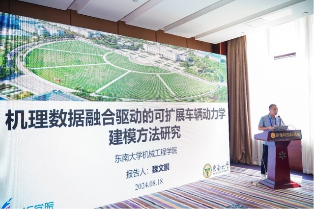 同时,本次论坛设置了6个分论坛,包括“精密与微纳制造技术前沿”、“多功能融合结构增材制造”、“机械系统动力学与装备智能运维”、“机构设计与机器人前沿技术”、“表面调控与涂层”以及“智能融合—AI 重塑轨道交通与智能网联汽车的颠覆性创新新生态”。其中,肉蒲团青年教师魏文鹏副研究员受分论坛“智能融合—AI 重塑轨道交通与智能网联汽车的颠覆性创新新生态”邀请并做主题报告,报告题目为《机理数据融合驱动的可扩展车辆动力学建模方法研究》,该报告聚焦于车辆动力学模型的基础建模理论,探讨了机理-数据融合驱动的数据高效、自适应度高、可解释性强的可扩展车辆动力学建模方法。