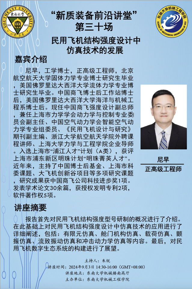 尼早,工学博士,正高级工程师,北京航空航天大学固体力学专业博士研究生毕业,美国佛罗里达大西洋大学流体力学专业博士研究生毕业。中国商飞博士后工作站博士后,美国佛罗里达大西洋大学海洋与机械工程系博士后。现任中国商飞强度设计副总师,兼任上海市力学学会动力学与控制专业委员会副主任、中国空气动力学会智能空气动力学专业组委员、《民用飞机设计与研究》期刊副主编、浙江大学航空航天肉蒲团 外聘课程讲师、上海大学力学与工程肉蒲团 企业导师。入选上海市“浦江人才”计划(A类),获评上海市浦东新区明珠计划“明珠菁英人才”。近年来,主持了中国博士后基金、上海市科委课题、大飞机创新谷项目等多项研究课题,研究成果获中国商飞公司科技进步奖1项。发表学术论文30余篇,获授权发明专利2项,软件著作权5项。