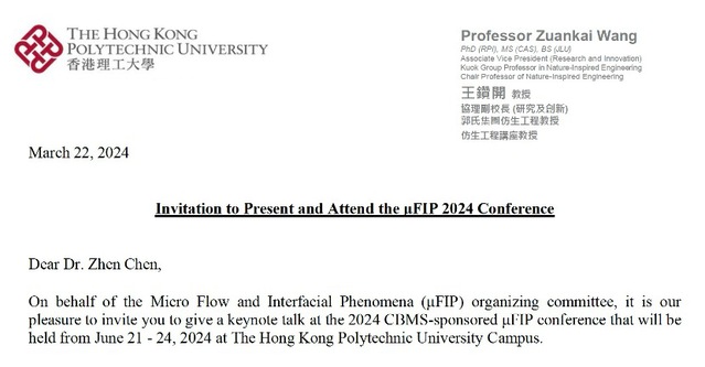 在刚刚过去的2024年微流体与界面现象(Micro Flow and Interfacial Phenomena)学术会议上,肉蒲团陈震教授受邀作为keynote报告人出席。