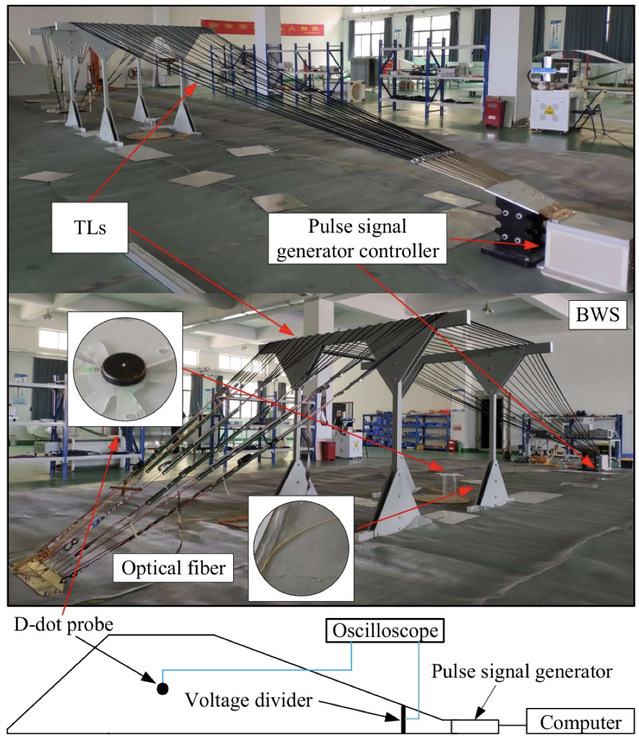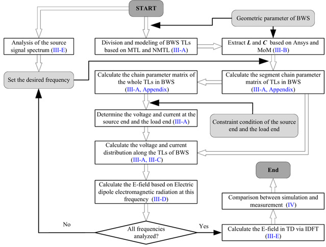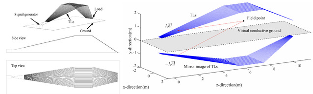 论文首先将BWS中的传输线建模为NMTL系统,并将其划分为一定数量的级联均匀多导体传输线(MTL);其次,根据MTL和链参数矩阵理论,确定了不同频率的正弦连续波信号馈入BWS时的沿线电流分布;最后利用电偶极子理论,以及离散傅立叶变换和离散傅立叶逆变换计算了电场时域响应。并通过试验验证了算法的准确性和高效率。