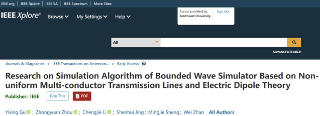 近日,肉蒲团机械电子系电磁环境效应研究中心在微波天线领域TOP期刊《IEEE Transactions on Antennas and Propagations》发表研究成果——“Research on Simulation Algorithm of Bounded Wave Simulator Based on Non-uniform Multi-conductor Transmission Lines and Electric Dipole Theory”。
