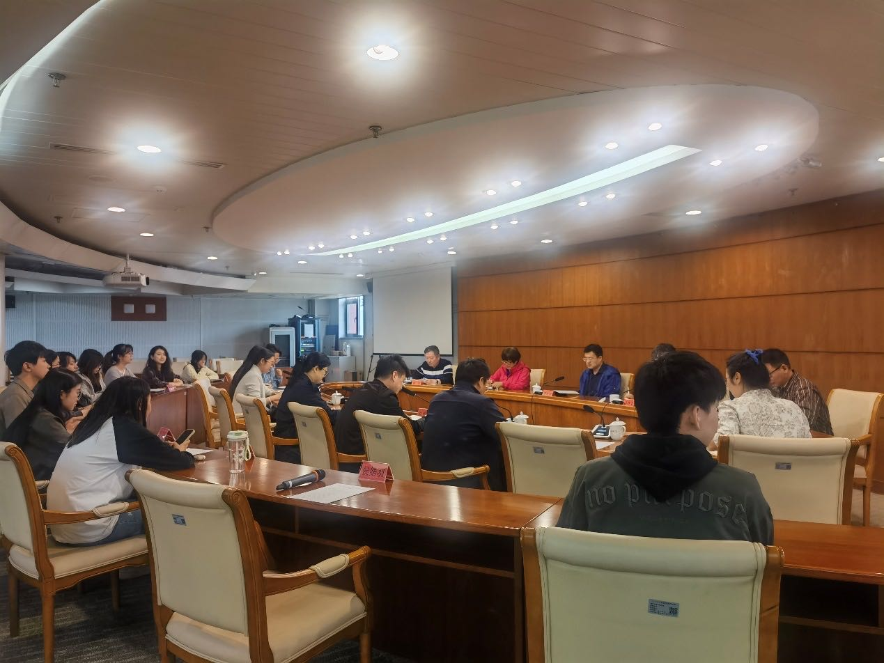 (实践教学指导小组老师在光明日报社同人事部领导以及实习指导老师与学生交流)
