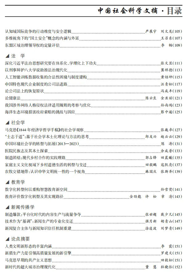 《中国社会科学文摘》由中国社会科学院主办,与《新华文摘》和《高等学校文科学术文摘》并称为“三大文摘”,是人文社会科学领域影响最大的文摘期刊。
