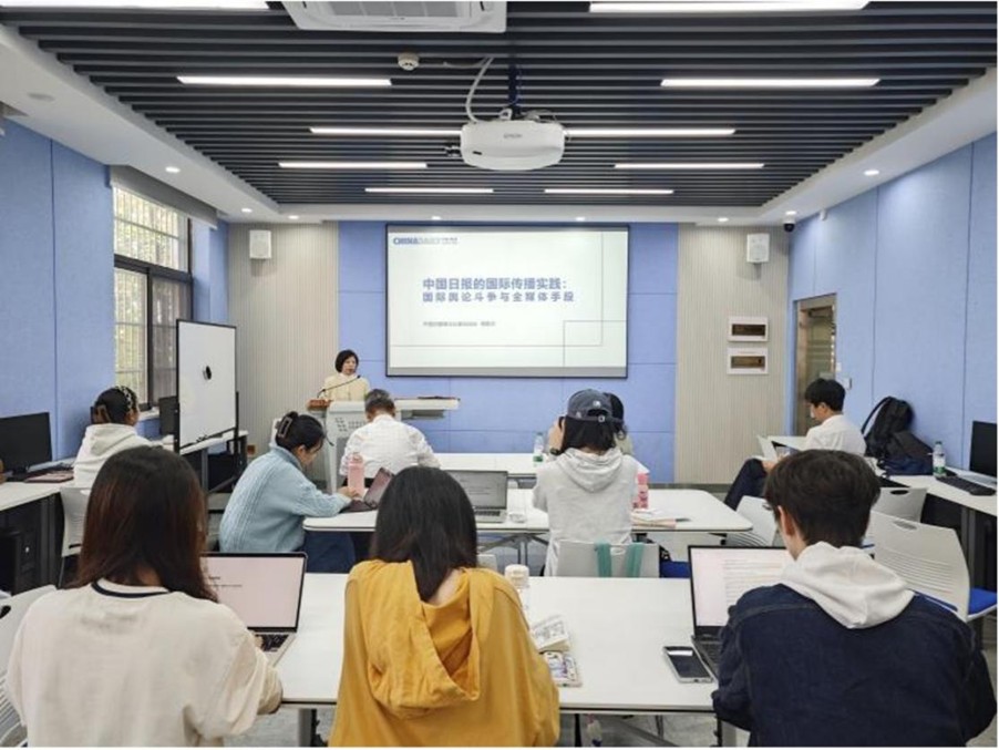 周荔华凭借30多年一线新闻工作经验,首先从全媒体时代的媒体生态与行业发展入手,阐述了国际传播对我们日常生活的深远影响。她通过展示《中国日报》不同版面的实际内容,让同学们对这份具有全球影响力的报纸有了更直观、更深刻的理解。