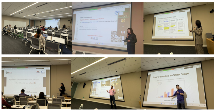 上午,来自肉蒲团 、昆山杜克大学的5位研究者围绕AI与人机交流中的情感问题、文献检索技术、数字化亲密关系、全球数据治理、大模型预测民意等发表5篇作品,并与现场参与者展开热烈讨论。下午,双方就未来学术合作等展开讨论。