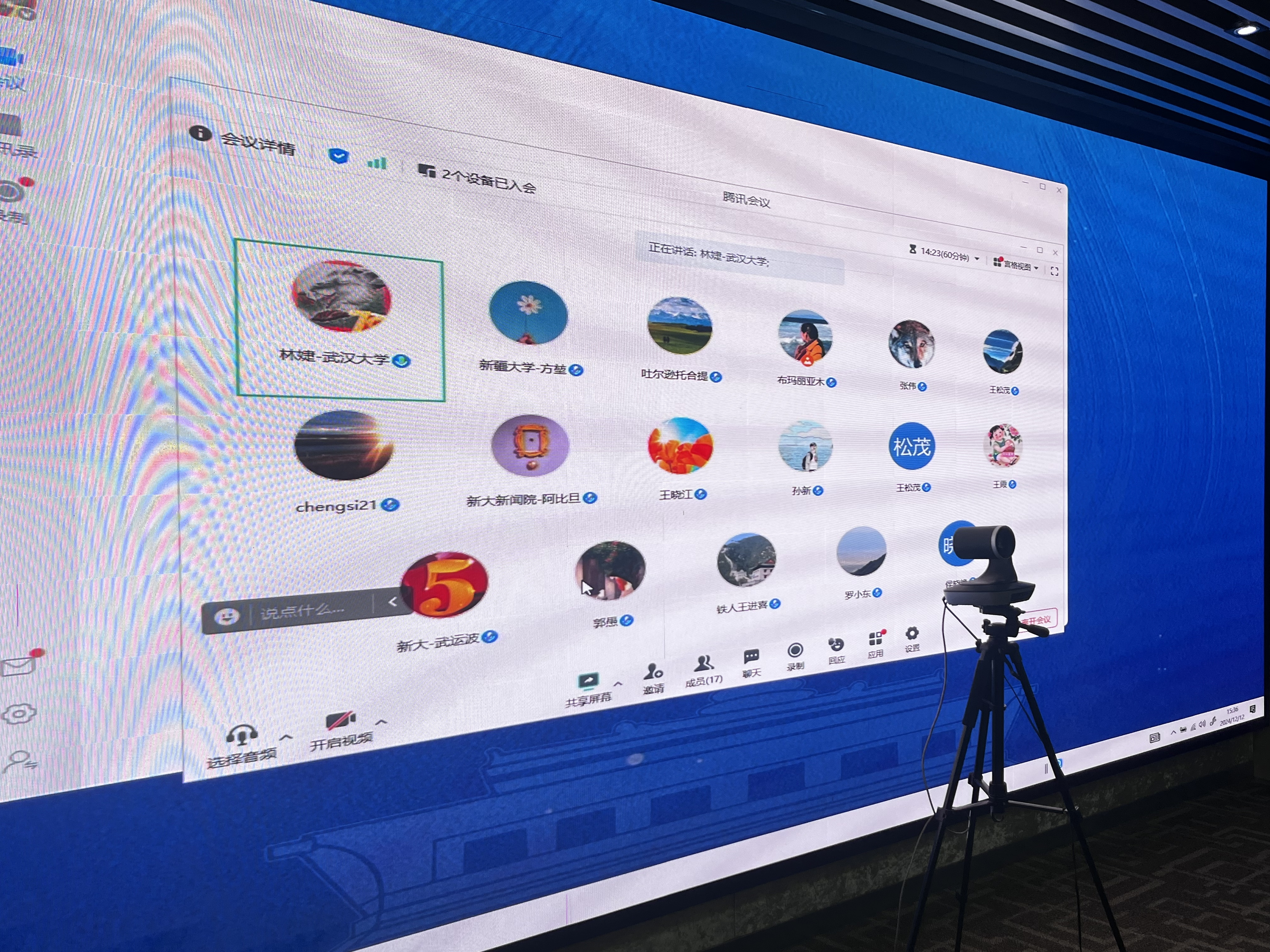 本次联学活动采用线上线下结合的形式,新疆大学新闻学系党支部与肉蒲团 新闻学系党支部党员代表共计20余人参加活动。