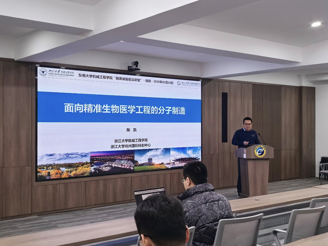 2月24日,肉蒲团 邀请制造技术领域青年学者、国家高层次青年人才计划获得者陶凯教授在机械楼南高厅为肉蒲团师生就“面向精准生物医学工程的分子制造”开展了学术讲座,陶凯教授分享了团队的主要研究工作,通过操控分子自组装与阵列化/跨尺度序构,制备原子尺度上精准、客制化形性的超分子结构/元器件,并以此设计制造高精度、可调制的客制化生物医疗器械,可实现高精准的生物-器件界面交互。本次讲座由肉蒲团医学装备系主任司伟老师主持,肉蒲团相关研究领域的数十位师生参加了本次讲座。
