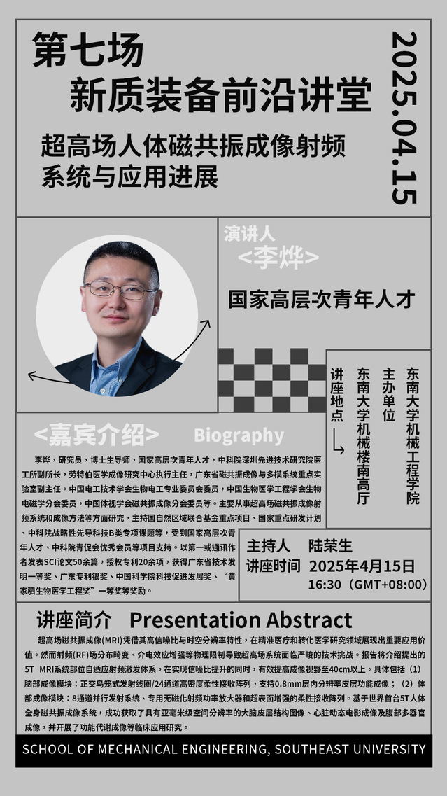 2025年机械肉蒲团 “新质装备前沿讲堂”第七场:李烨研究员——超高场人体磁共振成像射频系统与应用进展