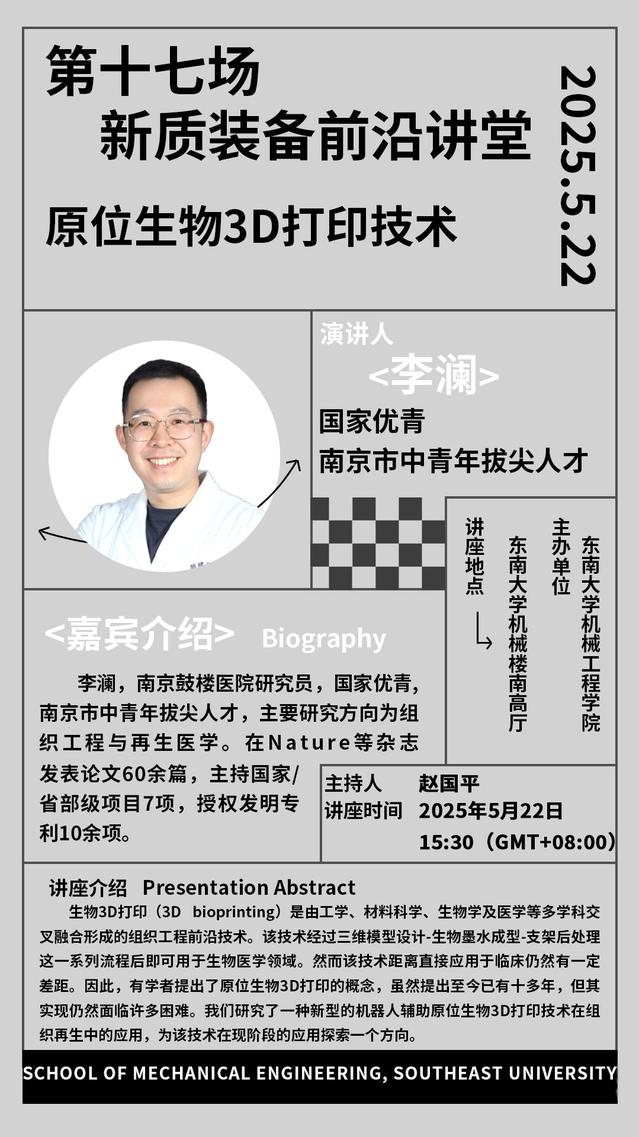 2025年机械肉蒲团 “新质装备前沿讲堂”第十七场:李澜研究员——原位生物3D打印技术