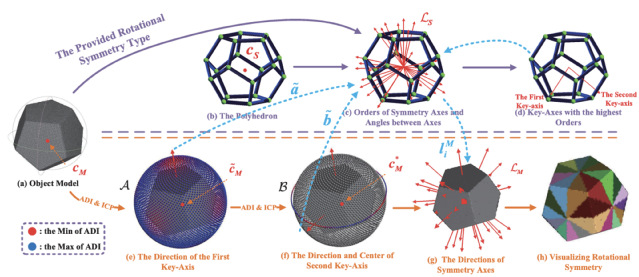 面向具有旋转对称物体的姿态估计常因对称性引发多解问题,亟需精准的对称轴定位来消除歧义。为此,论文提出一种基于关键轴的高效对称轴自动确定与定位方法:首先根据物体的旋转对称类型或多面体结构,自动推断对称轴的阶数及夹角,无需人工设定;随后选取阶数最高的两条关键轴并定位,再生成三条正交基轴,由此可计算出全部对称轴。针对几何对称物体,采用广泛应用于 BOP 评价体系中的 ADI度量;针对纹理对称物体,创新引入考虑纹理一致性的 ADI‐C 度量,实现几何与纹理对称的协同处理。大量实验表明,本方法在主流基准数据集上有效消除对称性带来的姿态歧义,显著提升了对称轴定位的准确性与 6D 姿态估计的稳健性。论文同时发布了涵盖七类几何与纹理对称对象的全新 DSRSTO 数据集,并开源工具 KASAL(