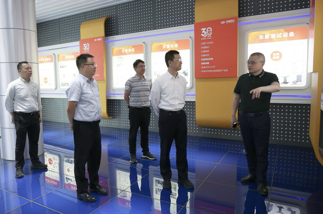 费庆国院长一行首先参观了公司产品展厅、研发中心和制造车间。府晓宏董事长详细介绍了东菱公司的发展历程、核心业务以及在环境试验装备等领域的前沿技术突破。