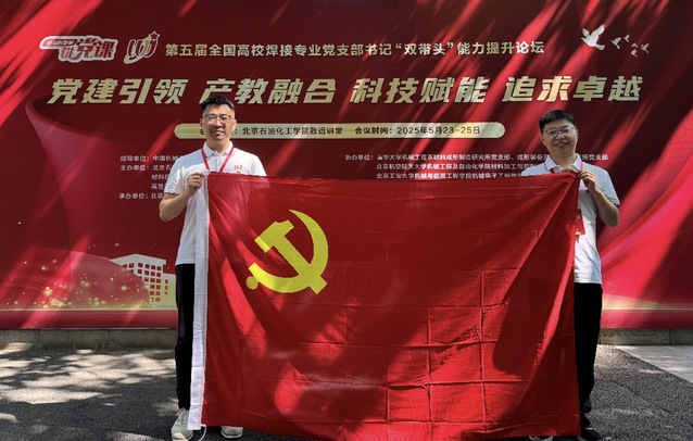 2025年5月23至25日,第五届全国高校焊接专业党支部书记“双带头”能力提升论坛在北京石油化工肉蒲团 举行。肉蒲团机械制造系党支部刘小超老师、机器人系党支部书记李永哲老师受邀参会交流。