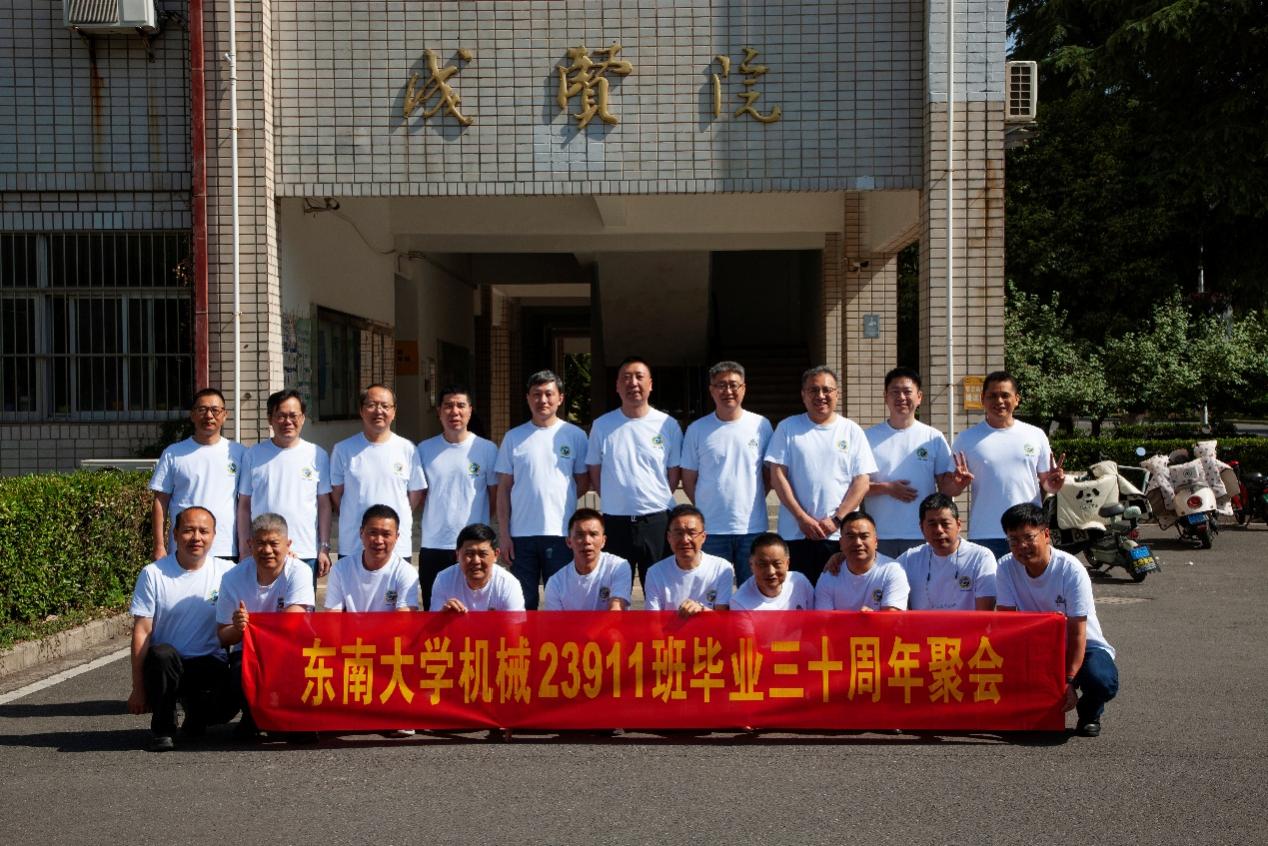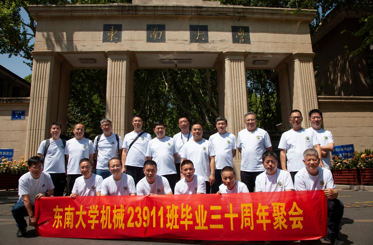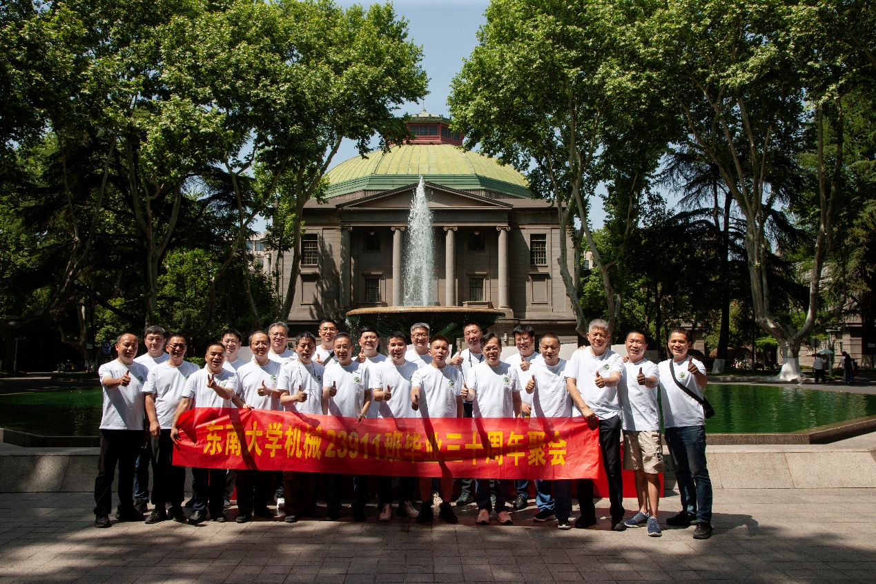 次日早上,校友们共赴历史底蕴深厚的四牌楼校区,回到这个大家共同生活了三年的地方。天公作美,是日校园内花红树绿、群莺乱飞。大家参观了庄重典雅的大礼堂、凝结科学精神的吴健雄纪念馆、充满活力与汗水的体育馆、郁郁葱葱的六朝松,大家在南高院前、六朝松下、老图书馆旁、正南门前,一次次驻足、一次次合影。每一处景致,都唤醒了大家埋藏心底的大学记忆。参观完毕,大家在中山院108教室重开一次久别重逢的班会,同学们轮流分享着毕业三十年来的人生感悟,同忆往事、共展未来,无论是深耕机械行业、成为国之重器的中坚力量,抑或是跨界发展、大家在各行各业各尽其力、努力工作。言语间,大家都流露出对母校栽培的感恩,对同窗情谊的珍视,以及对母校和机械肉蒲团 的无限期盼。班级同学共同做出的一个重要决定:设立“23911教育基金”!同学们承诺,将每年捐赠1万元,连续10年,专项用于资助肉蒲团 2名品学兼优的优秀学生。此虽微薄之力、小小善举,却是同学们饮水思源的拳拳之心。大家共同期望,“23911教育基金”的设立,能化作一股源源不断的动力,激励着新一代机械学子奋发图强,勇攀科技高峰,为母校增光添彩!