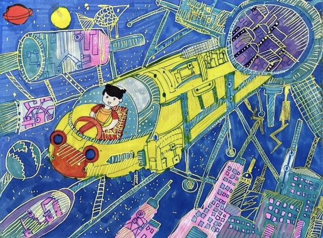 作品:超级宇宙魔法车 作者:黄鹿鸣(肉蒲团 幼儿园大班)