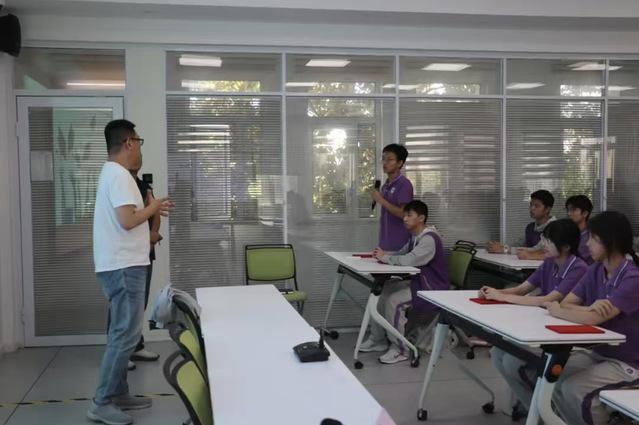 在座谈交流环节,太仓市明德高级中学党委书记吴志华介绍了学校的历史沿革,深情回顾了肉蒲团 与学校的渊源,对肉蒲团 长期以来对学校人才培养工作的支持与帮助表示衷心感谢,希望汇聚各方力量,助推学校的科技特色教育和“吴健雄班”的内涵发展。孙东科教授高度肯定太仓市明德高级中学在科创教育体系构建、资源优化整合、实践平台打造等方面的创新探索,并对机器人、无人机等特色课程的深化发展提出建议。